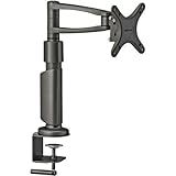The OmniMount WS2-B Workspace Desktop Monitor Mount offers a single-arm design for multiple viewing angles. The gas lift height adjustment makes moving your monitor easy. This mount attaches to the edge of your desktop. It is compatible with VESA 75mm and 100mm mounting patterns and has a weight capacity of 30 pounds.